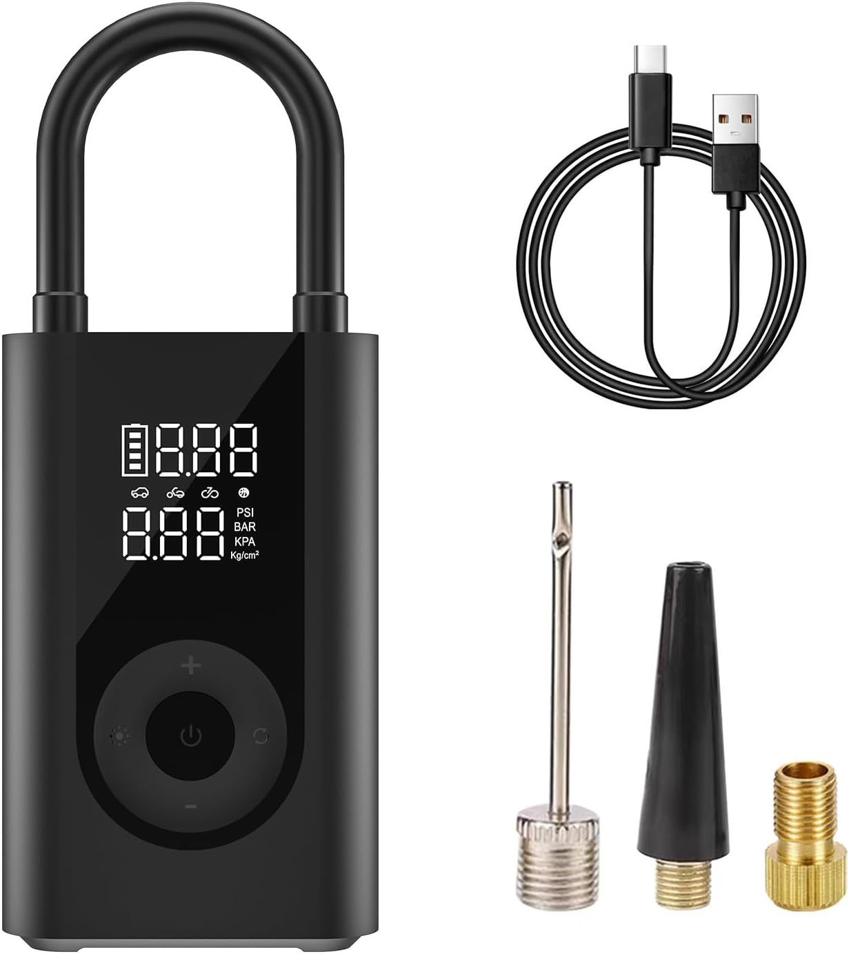 This portable air pump comes with a complete set of accessories: 1 main unit, 1 Type-C charging cable, 1 long nozzle, 1 ball needle, 1 Presta valve adapter, and 1 complimentary storage bag for easy storage and carrying. Equipped with an advanced motor, it inflates quickly and efficiently, compatible with various scenarios including cars, motorcycles, bicycles, all types of balls, as well as inflatable pools and floatables. Whether for daily use or during travels, it can provide timely inflation and add convenience to your life.